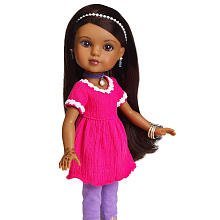 Details: Experience a girl's life in exotic India with our Nahji doll! Like all Hearts For Hearts Girls dolls, Nahji stands 14 inches high and has a poseable, smooth vinyl body, and high-quality rooted hair for hours of doll play. Her brown eyes gleam with amber glints and her hair is a sweeping fall of rich coffee brown. Nahji comes dressed in a tunic of bright fuschia-colored crinkle cotton, trimmed in white applique, and lavender leggings with deep hems of embossed gold print. She comes with a hair comb, a girl-sized heart charm bracelet, and a mini storybook about her life. Discover the other beautiful Hearts For Hearts dolls: Dell (USA), Lilian (Belarus), Rahel (Ethiopia), Tipi (Laos), and Consuelo (Mexico). Each doll is a girl that wants to make a difference in her life and community. When you buy a Hearts For Hearts Girls doll, a portion of the purchase price is donated to children's causes in those countries through World Vision, a global humanitarian organization. Quality details such as ethnic jewelry and cultural yet current outfits make these dolls that any girl will treasure. Hearts For Hearts Girls also offers a fun, child-safe website full of stories, games, and activities. Change the world one heart at a time with Hearts For Hearts Girls!